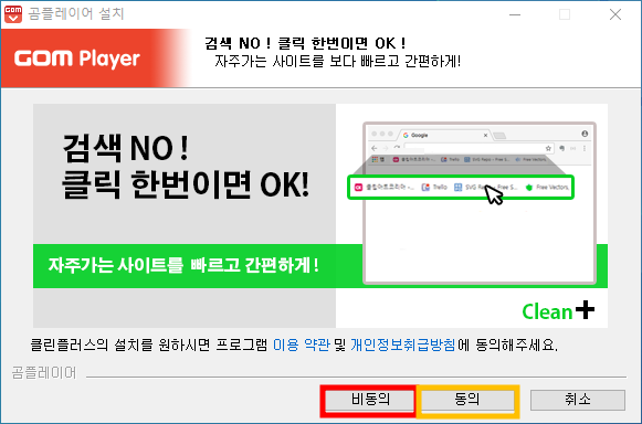 클린플러스 기능을 함께 사용하고 싶으시면 동의 버튼을 클릭하시면 됩니다.