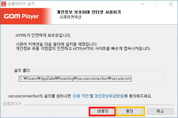 ▼ 시큐어 커넥션도 마찬가지로 저는 비동의로 설치 진행하겠습니다.