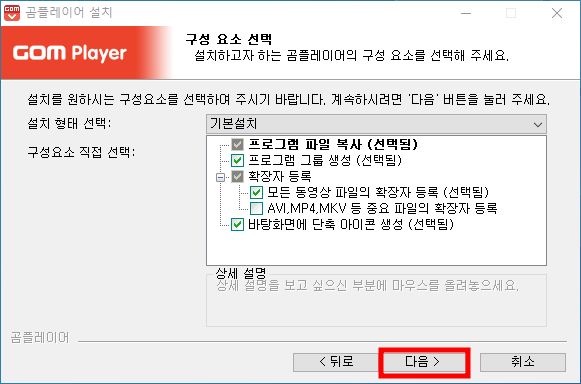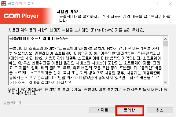 ▼곰플레이어 설치를 시작합니다. 다음 버튼을 클릭해주세요.