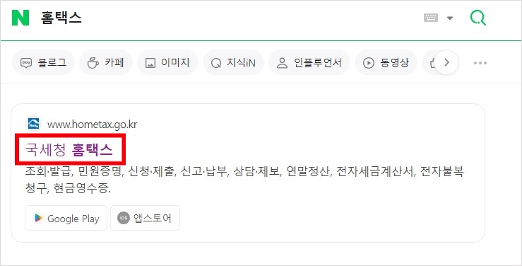 2. 검색포털에서 홈택스 검색하기