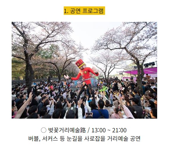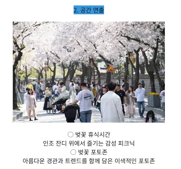 - 일시: 2024년 3월말~4월초 주말 포함 5일내외 매년 비슷한시기에 시작했고 3월중순 서울시에서 업데이트 예정