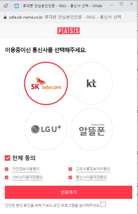 ▼ 로그인을 했음해도 불구하고 신청하기를 클릭하면 본인인증을 한번 더 하라고 합니다.