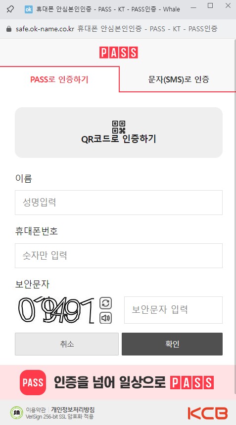 pass로 인증하시거나 문자인증 혹은 QR코드로 인증을 진행해주세요.