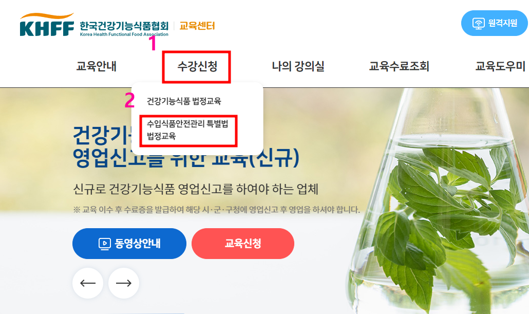 수입식품 안전관리특별법 법정교육이 나옵니다. 클릭하세요.
