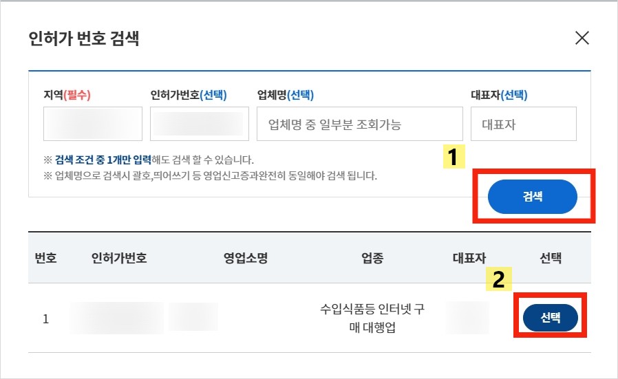 인허가 번호를 알고 계시면 인허가 번호를 적으시고