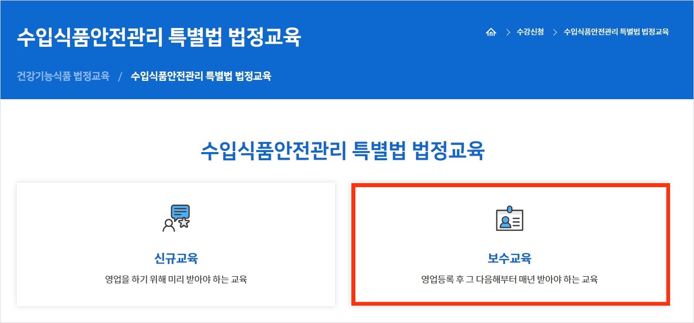 3. 수강신청 → 수입식품안전관리특별법 법정교육 →보수교육