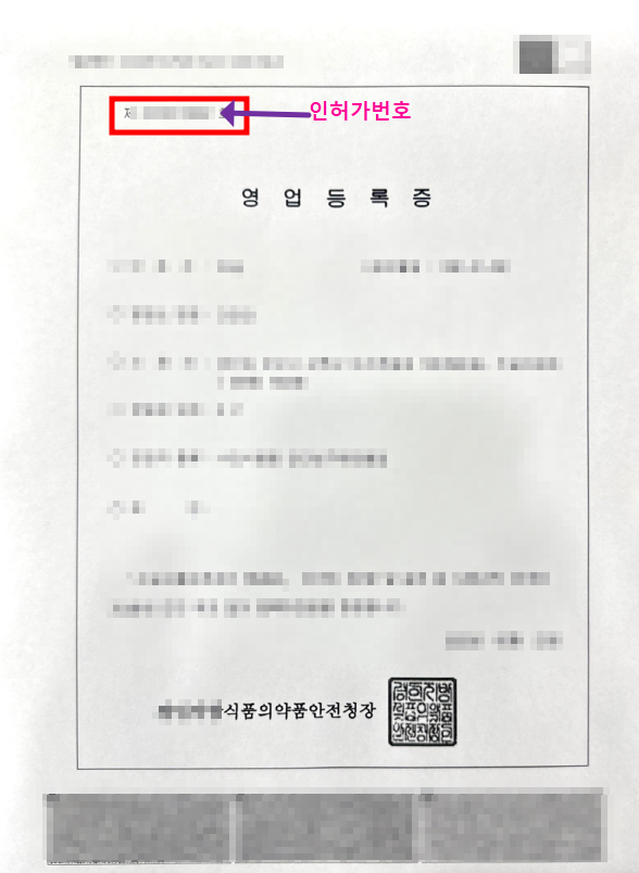 ▼참고로 인허가 번호는 영업신고증 왼쪽상단에 있는 11자리 번호 입니다.
