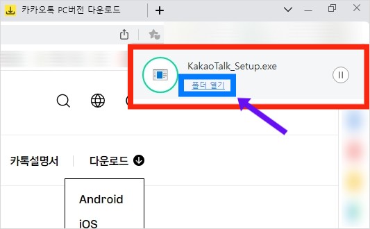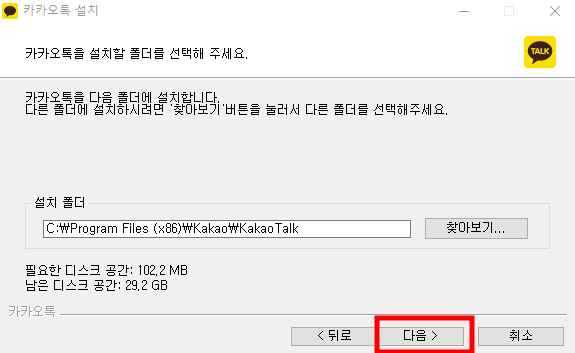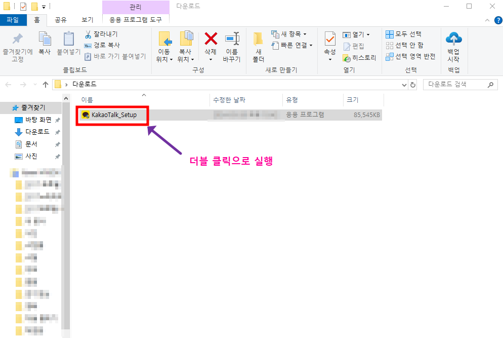 다운로드 폴더에 있는 카카오톡 실행 파일을 더블클릭하여 실행합니다.