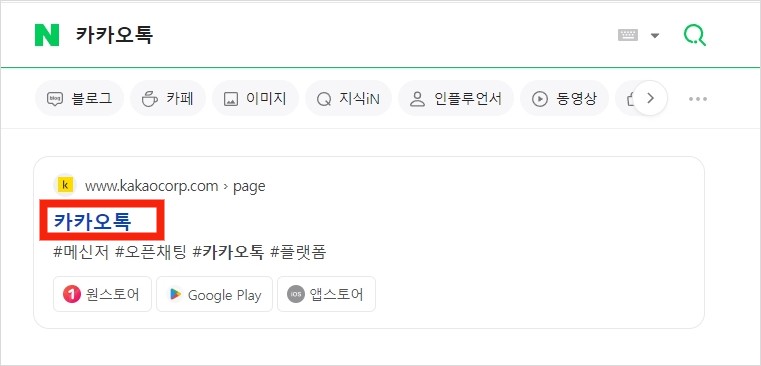검색 포털에서 카카오톡을 검색하셔서 클릭해주세요.