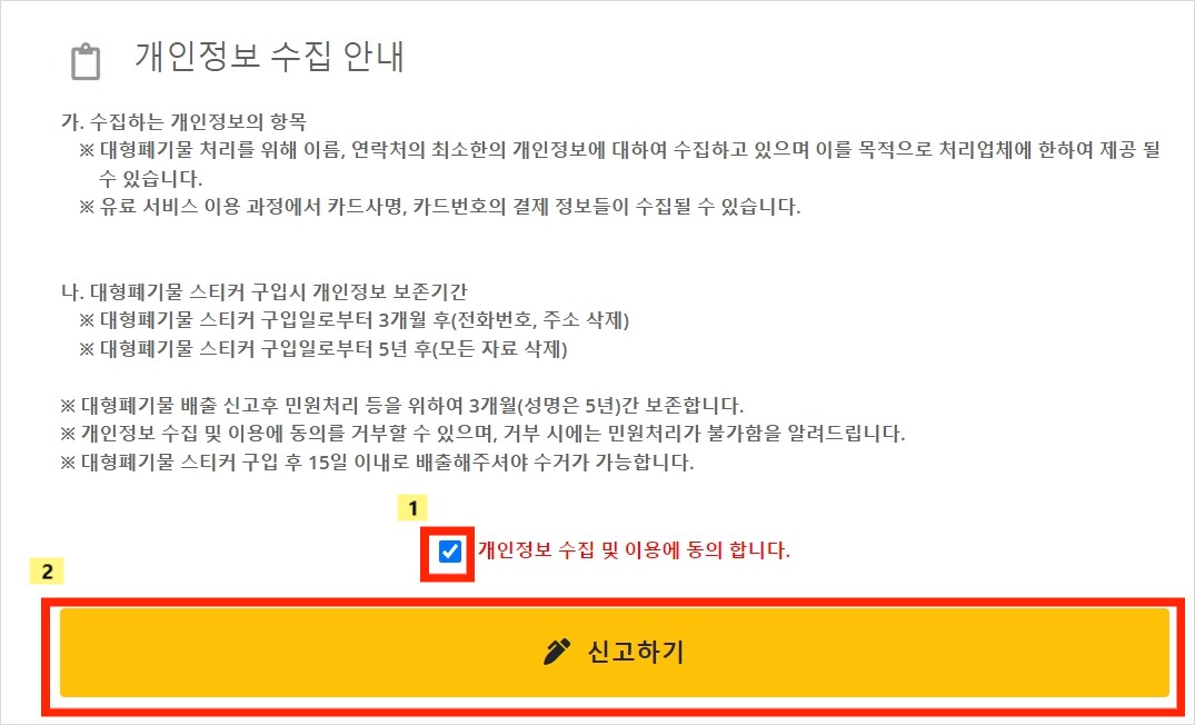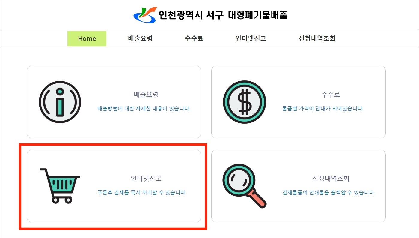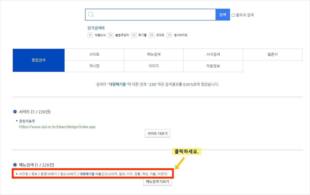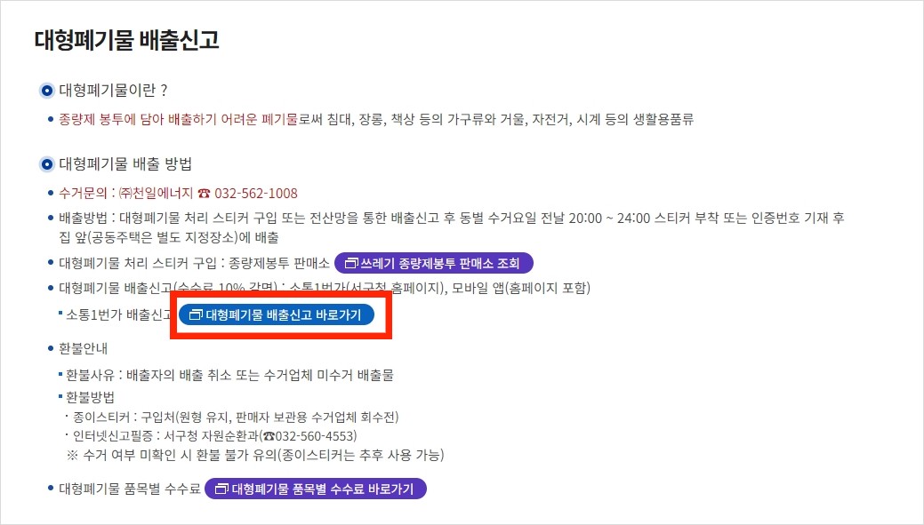 대형폐기물 배출신고 바로가기 클릭