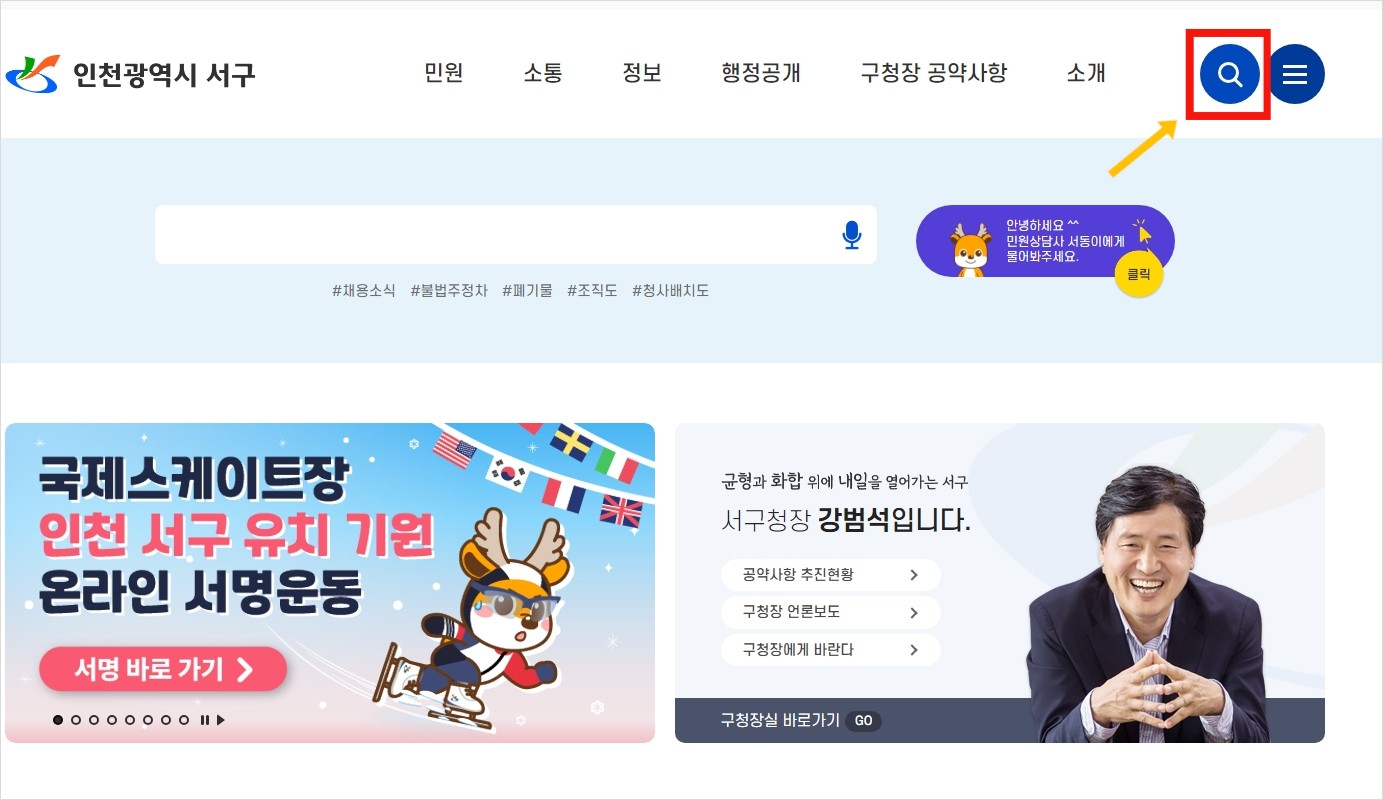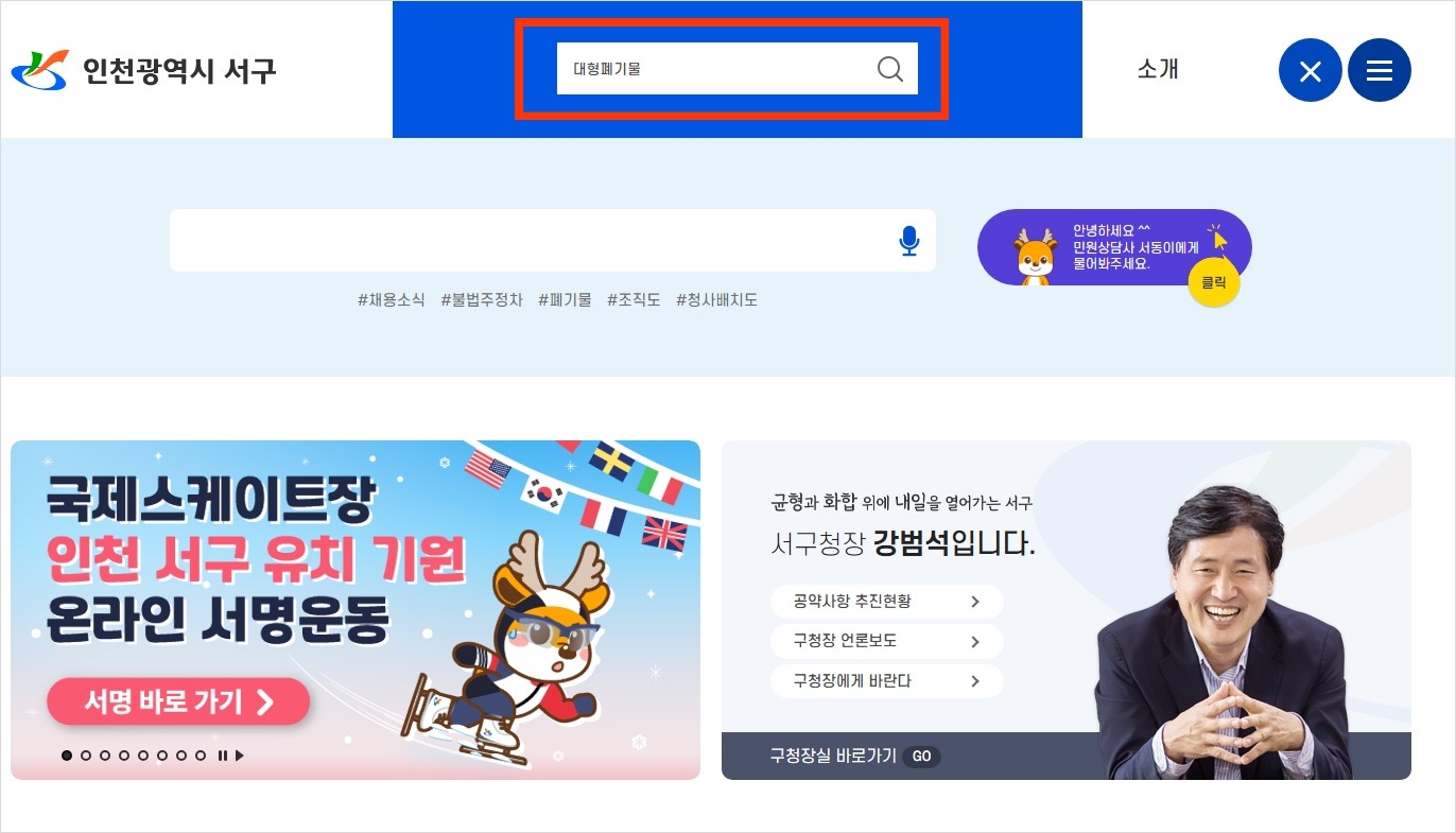 거주하시는곳 구청홈페이지에 방문하세요. 저는 인천 서구에 거주하고 있어서 인천 서구청 홈페이지에 접속했습니다.