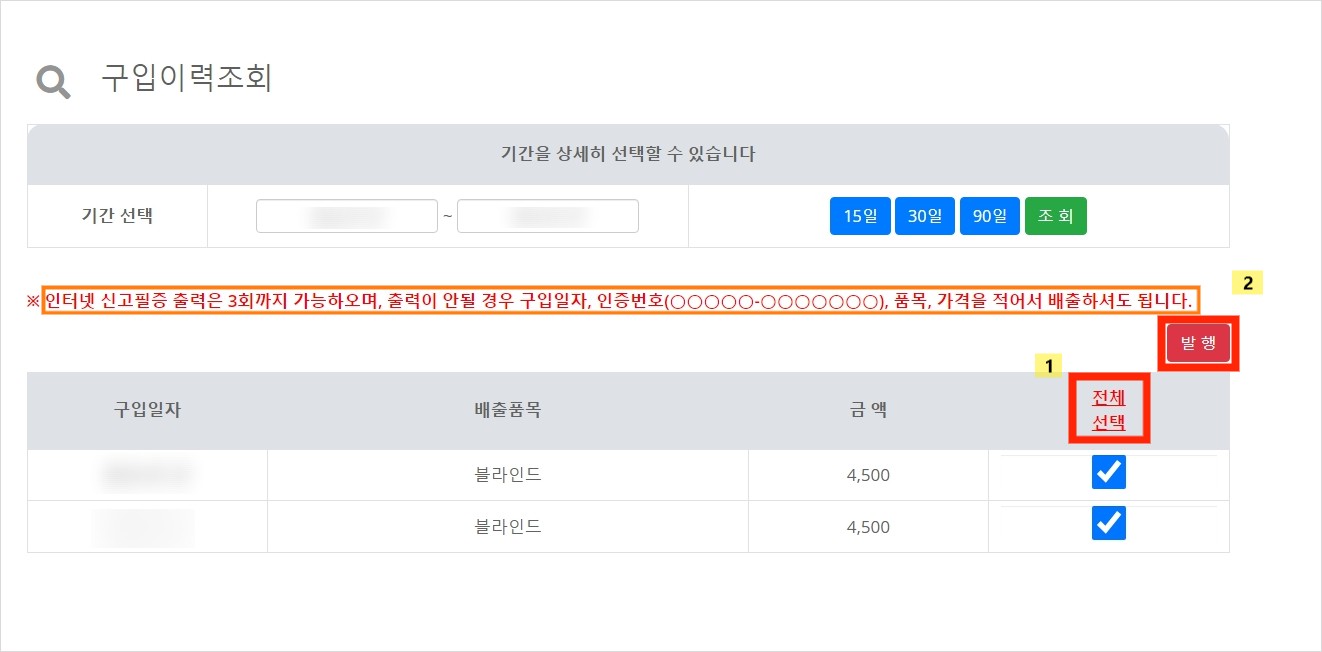 프린팅or인증번호 확인후 폐기물에 부착