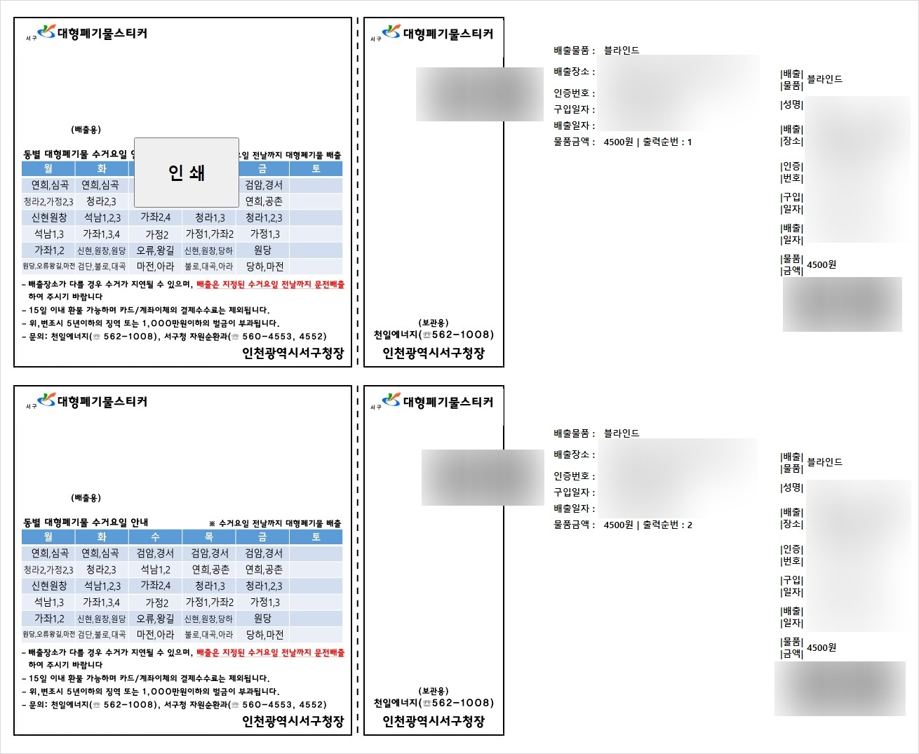 집에 프린터가 있으면 인쇄해서 폐기물에 부착하시면 되고