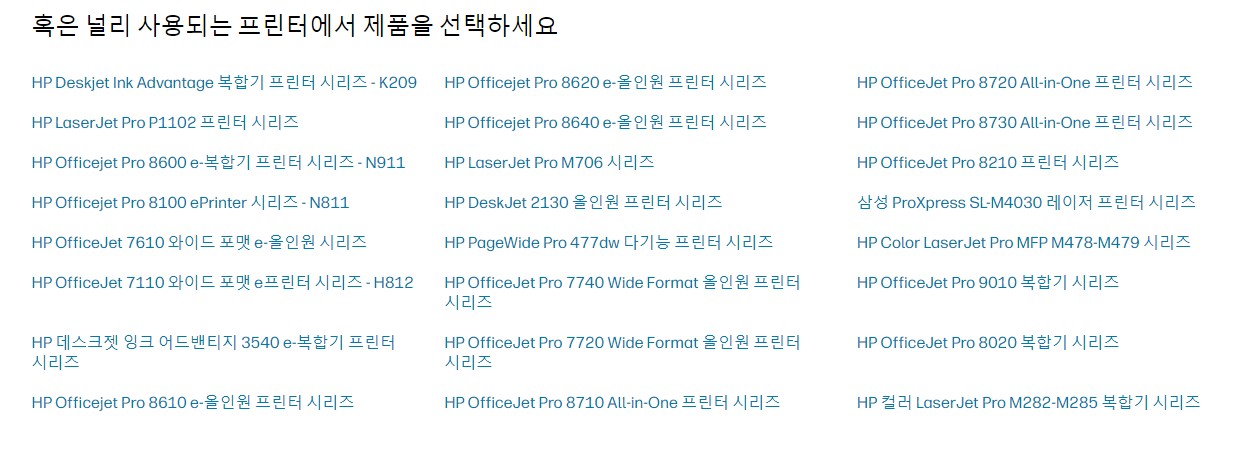 ▼ 프린터 모델을 못 찾으시겠으면 밑의 사진처럼 많이 쓰이는 프린터 모델들이 나열되있습니다.